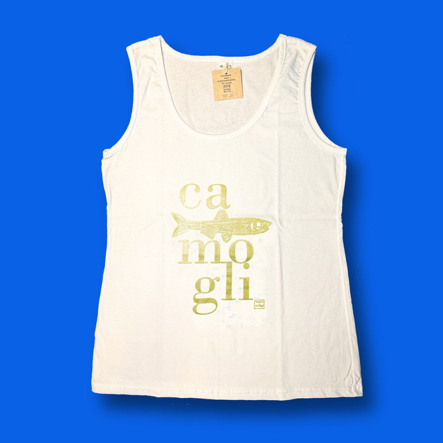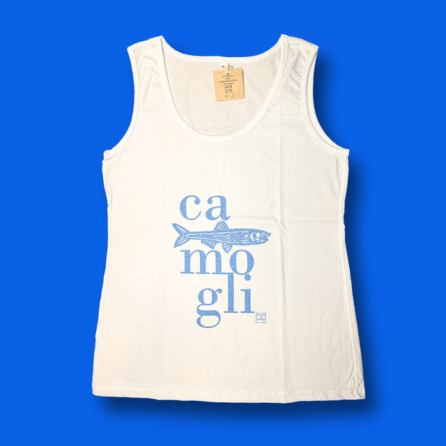 Canotte donna, 100% cotone, serigrafate a mano. Disegno originale Made in Camogli (Antonella Gaddi ©)
