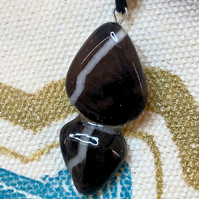 Pochettes in cotone canvas pesante, colore bianco naturale, cm.21x10 con zip nera, ciondolo in sasso di Camogli, linoleografie e decorazione in oro a pennello. Ogni pochettes è un pezzo unico. Le stesse varianti decorative possono essere realizzate anche in nero.