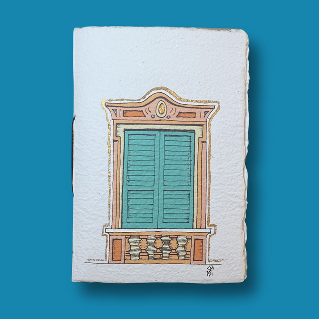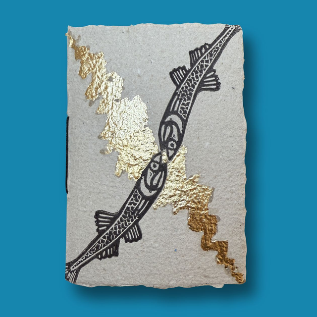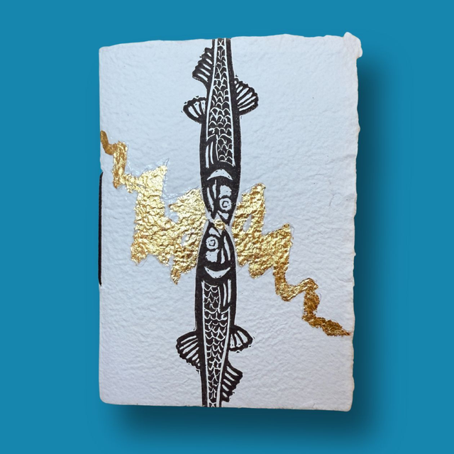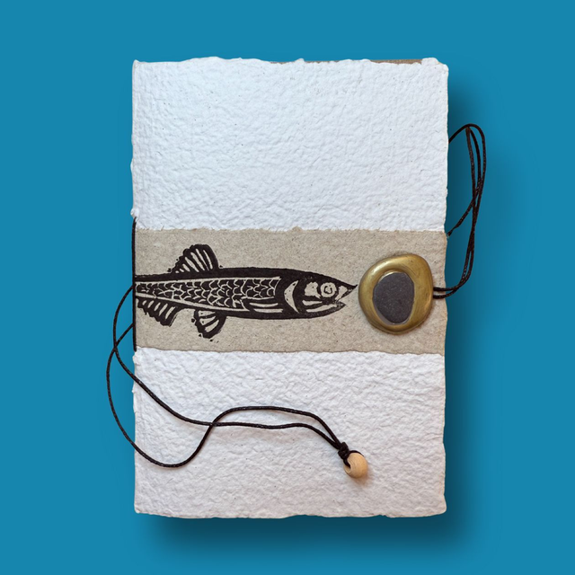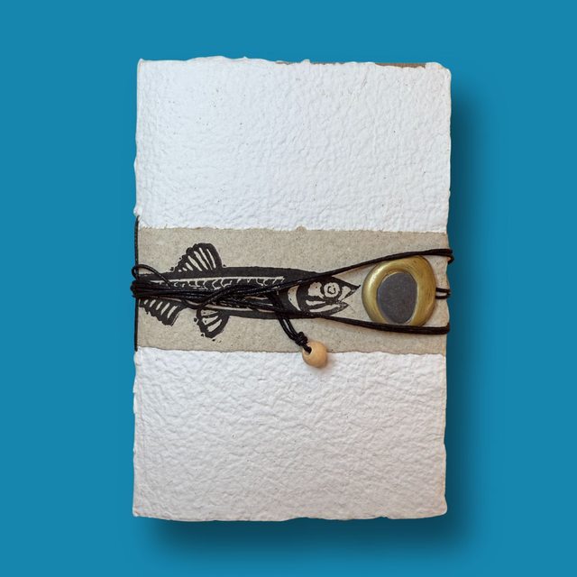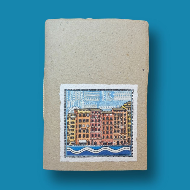 Quaderni con copertina in carta artigianale, cm.10 x 15, fogli puntinati all'interno, cuciti a mano.